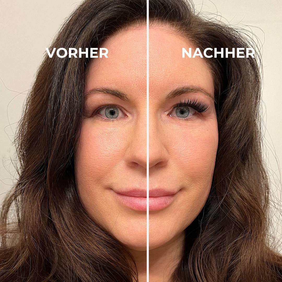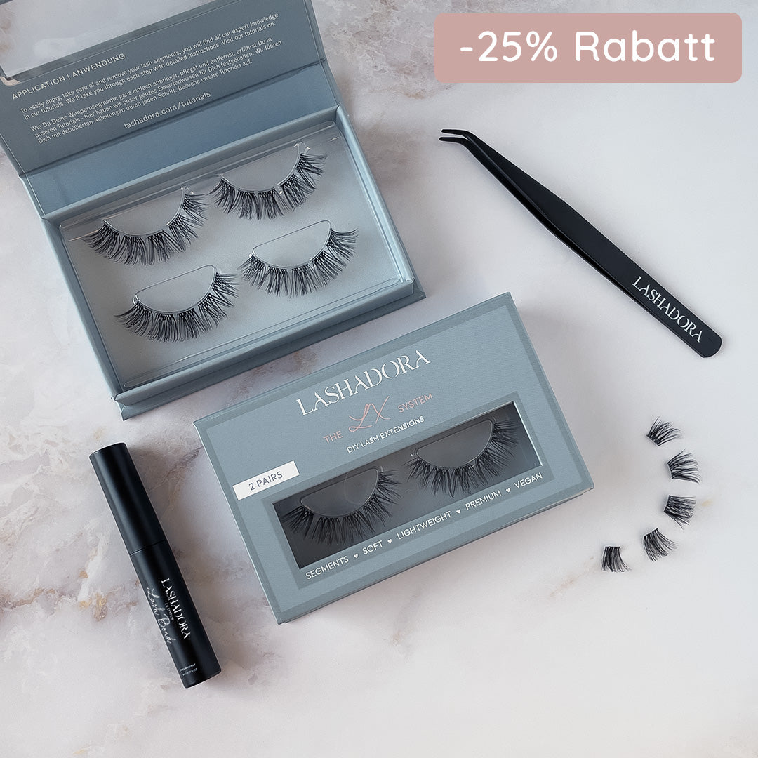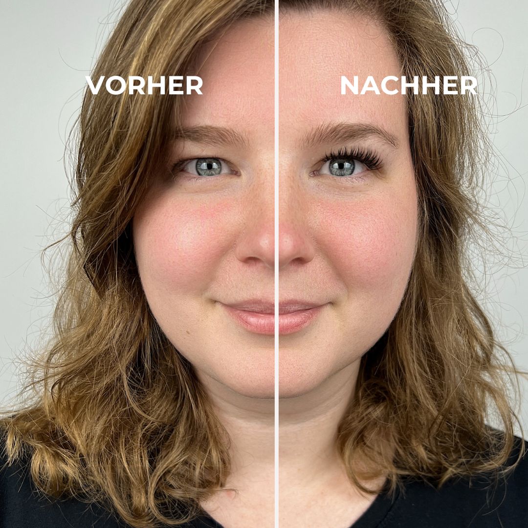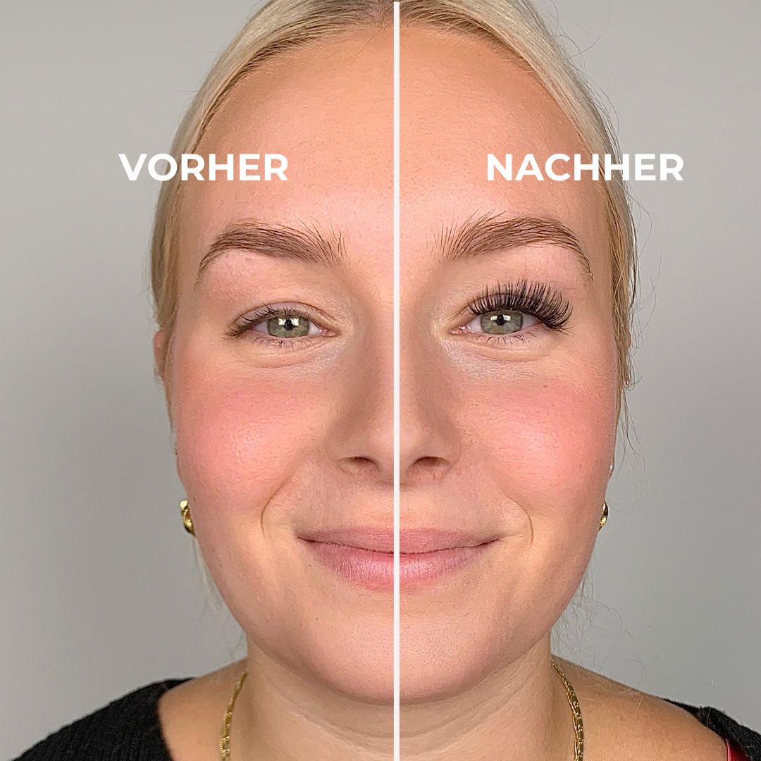 Mit den zwei verbleibenden Segmenten schließt du die Lücken. Je nach Augengröße sind die Überlappungen größer oder kleiner, so passen sich die Styles ideal deiner Augenform an. Indem du die Segmente miteinander verbindest, lastet kein Zug auf den Wimpern, wie es bei klassischen Wimpernverlängerungen aus dem Studio der Fall sein kann.